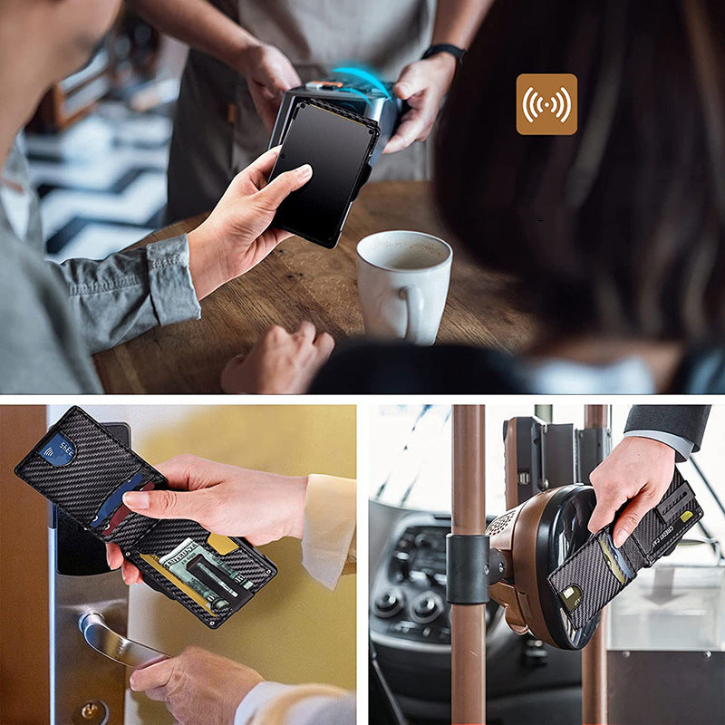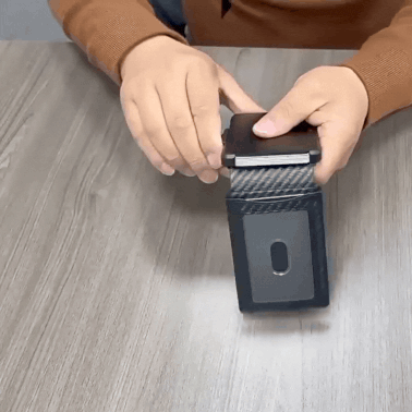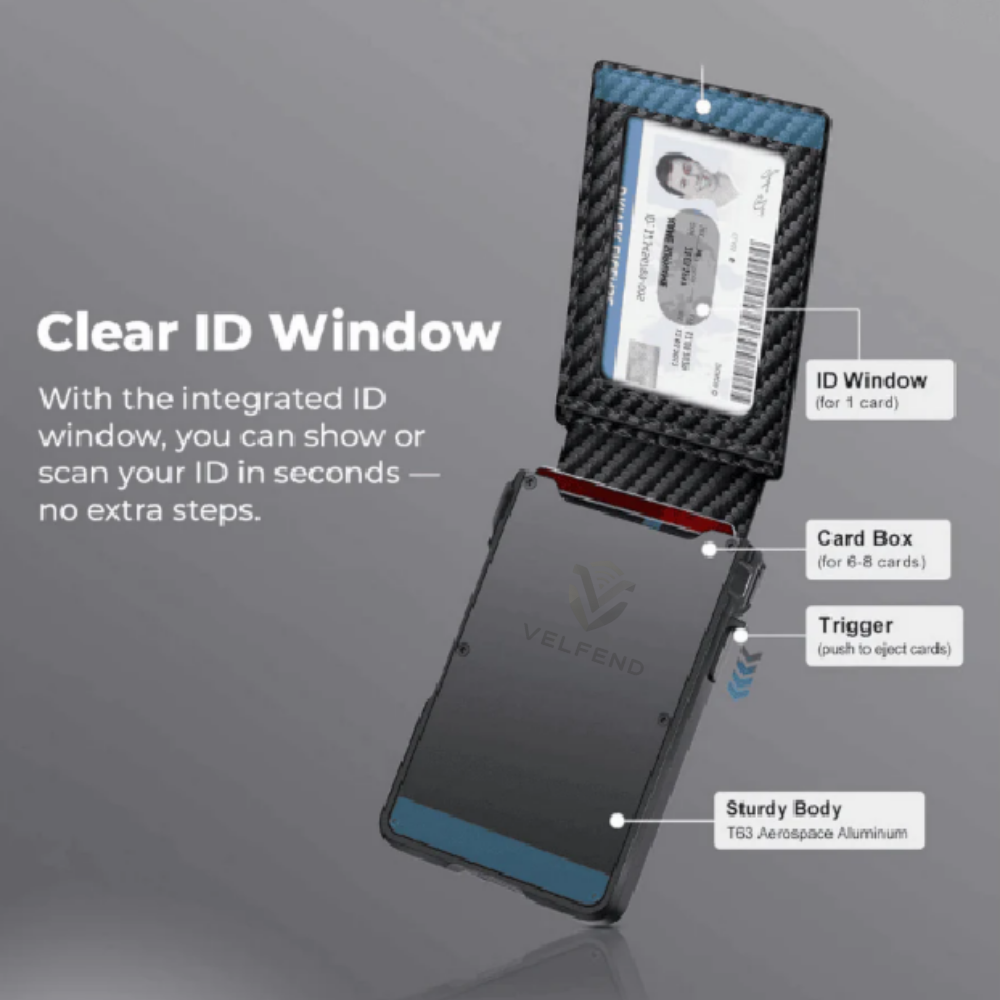 Unlike competitors that take 3+ seconds to access cards, VelFend features a one-press ejection system that smoothly pops up your cards instantly, making checkout a breeze.