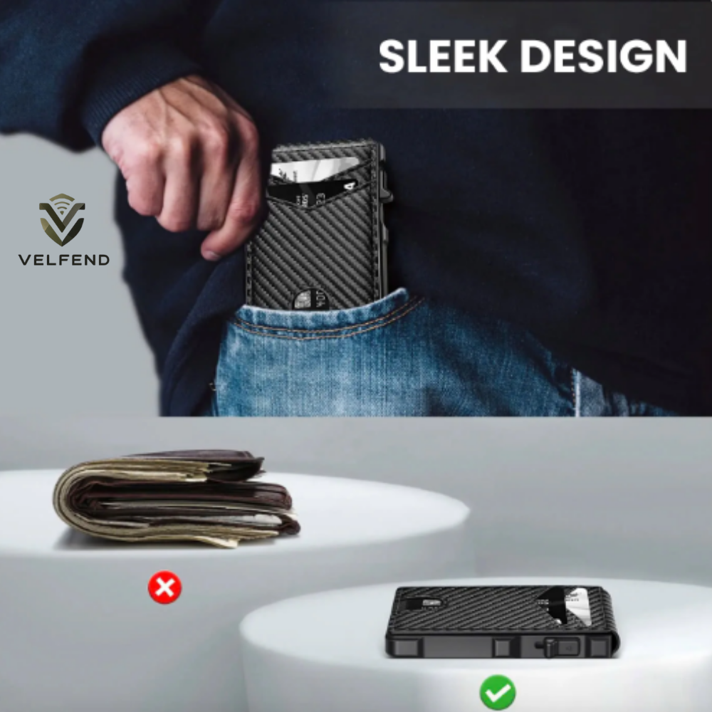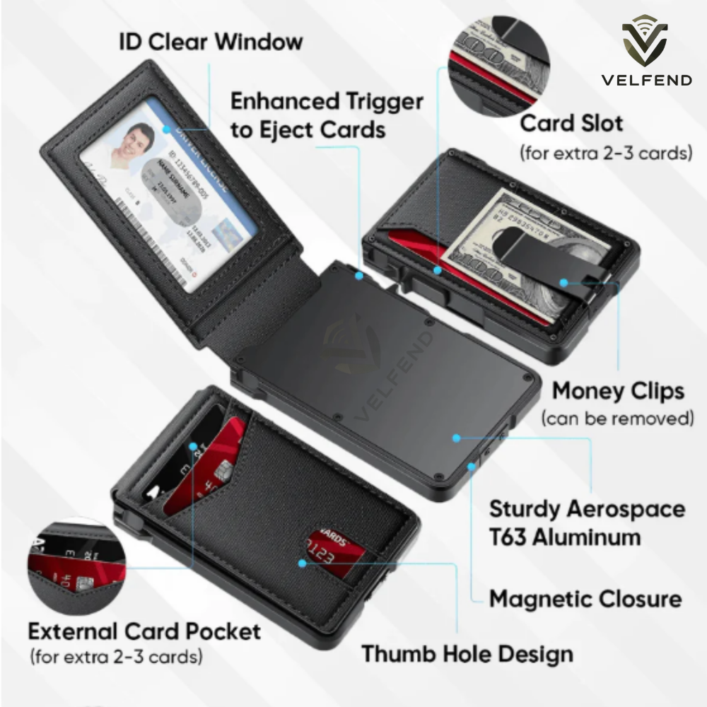 Made with premium metal materials, VelFend delivers the same luxury and durability as high-end brands—but at a fraction of the cost. Plus, its sleek bifold design ensures maximum capacity while staying ultra-compact.