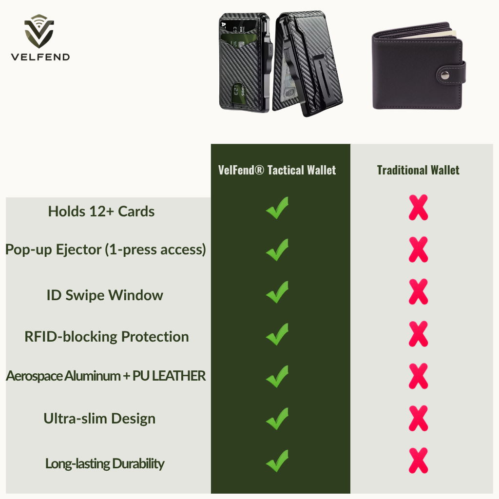 When comparing VelFend to competitors like Ridge and Ekster or other wallets on the market, the choice is clear.