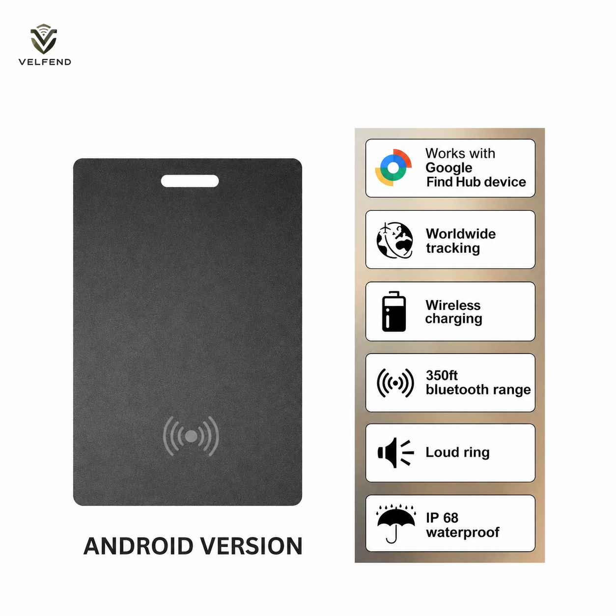 - Velfend® Tracker Card – a powerful tracker that helps you locate your wallet anytime, anywhere.