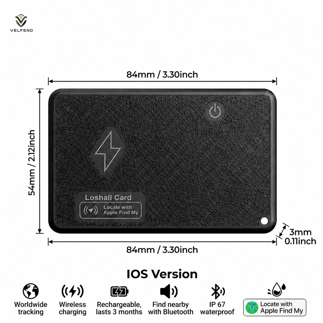 Introducing the VelFend Wallet Tracking Card — a slim, smart tracker that works seamlessly with iOS. Designed to fit discreetly into your wallet, this powerful device helps you locate your wallet in seconds through a simple tap on your smartphone.